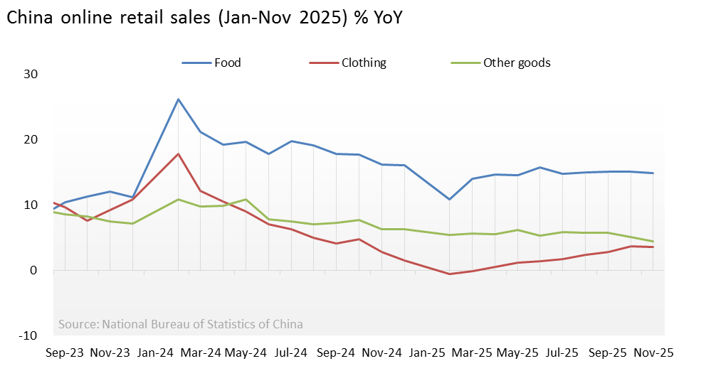 Online retail sales of clothing rise by 3.5% in Jan-Nov 2025